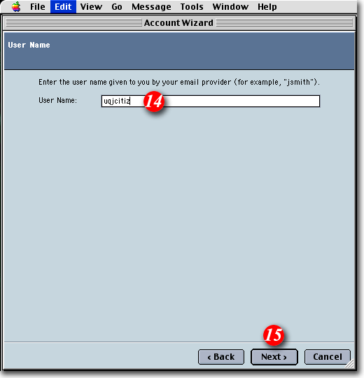 | 8)Type in your name as you would like it to appear in outgoing mail messages |