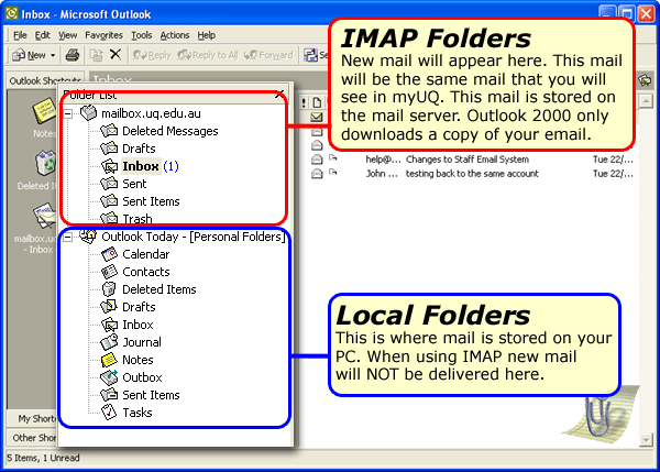 This guide is intended for users running Microsoft Outlook 2000 in Internet Mode only. It is not possible to setup IMAP on a Corporate version of Outlook 2000. Please refer to steps 1 and 2 for further details.